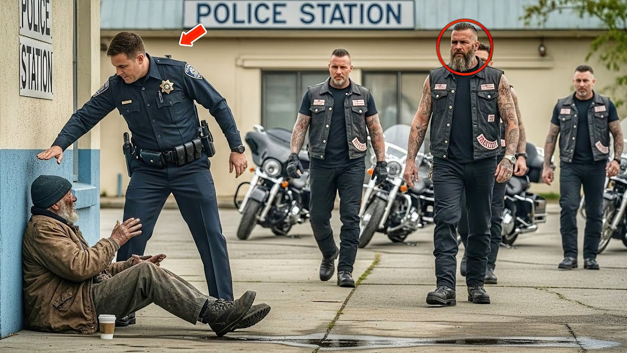 That night, as the sun set over the quiet town, the security footage from the station made its way online. A cop slapping a homeless man and five bikers stepping in. But what went viral wasn’t the confrontation. It was the compassion. It was the image of a tattooed biker kneeling beside a forgotten man, cleaning his wounds without a word.
