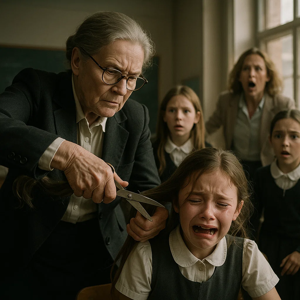 But it was too late. In one swift, horrifying motion, the teacher grabbed a section of the girl’s curls and chopped them off.