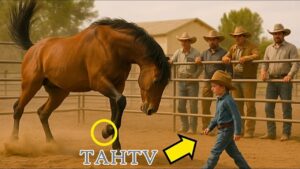 He wore a faded blue shirt, patched up jeans, and a cowboy hat that looked like it belonged to someone much bigger. The boy glanced around curiously, as if searching for something specific. “Excuse me, mister,” the boy said, addressing William. “Are you the owner of this ranch?” I am, son. Are you lost? The rancher asked, puzzled by the child’s presence. No, sir. I came because of the horse.