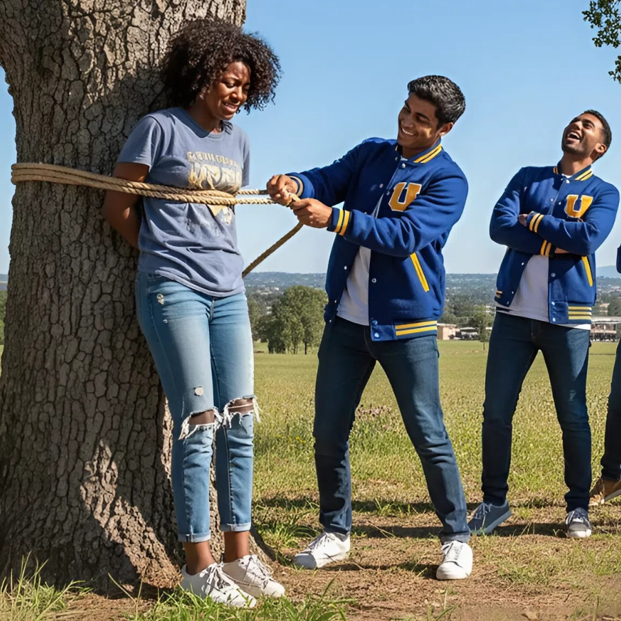 I rushed to the back of the school, where the old oak tree stood, its branches stretching out like arms ready to embrace. There, I found Logan surrounded by a group of his friends, laughing as they snapped pictures of Maya, who was indeed tied to the tree. Her eyes were filled with a mixture of anger and humiliation, and for the first time, I saw her vulnerability.