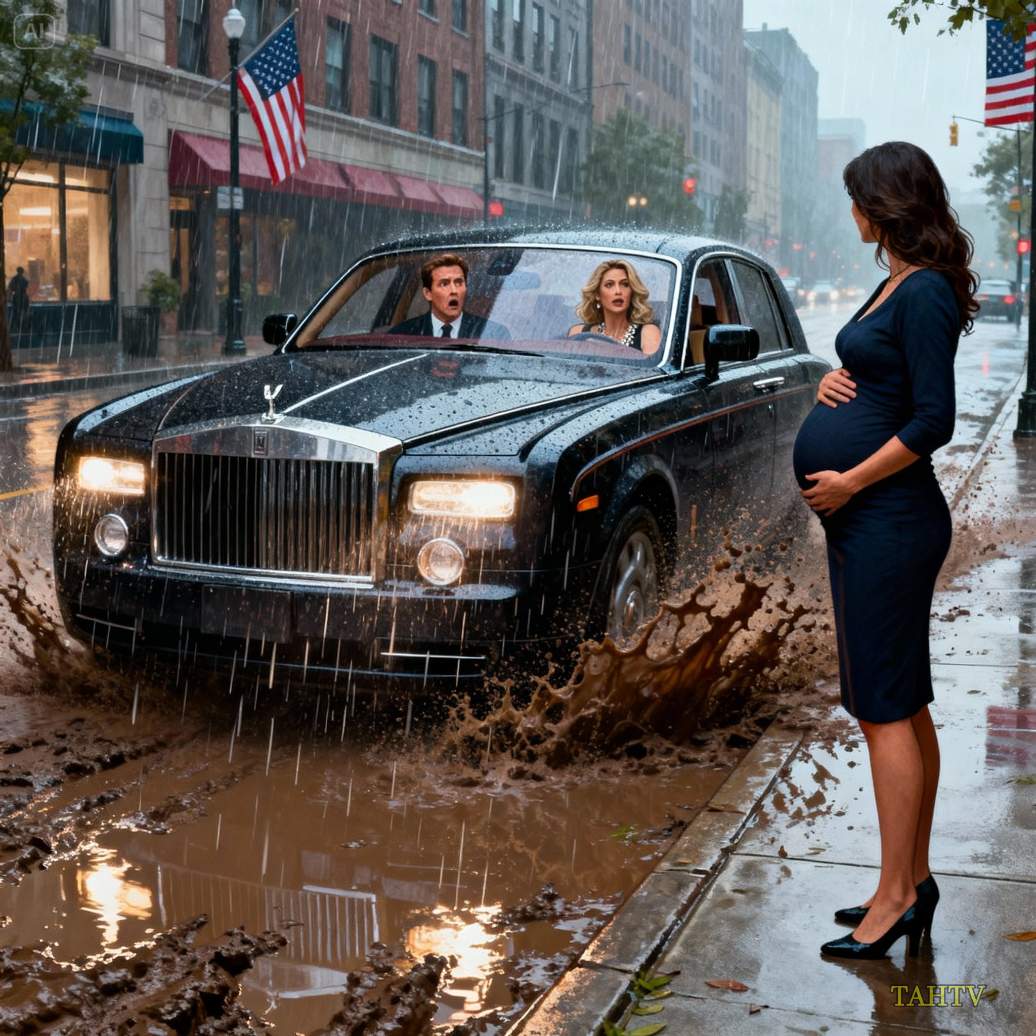She was crossing the street, grocery bags in hand, one hand protectively on her bump, when she heard the engine rev. A black Bentley Continental GT accelerated toward a massive puddle right beside her. Emma barely had time to process it before the impact. A tsunami of muddy water, freezing cold, violent, exploding over her body.