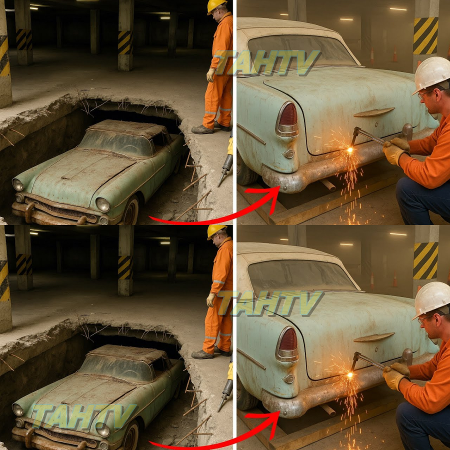 A construction crew found a vintage sports car buried under an old parking garage. When they opened the trunk, they immediately called the police. Foreman Mark Davis was overseeing the demolition of an old downtown parking structure when the excavator struck something solid beneath the foundation.