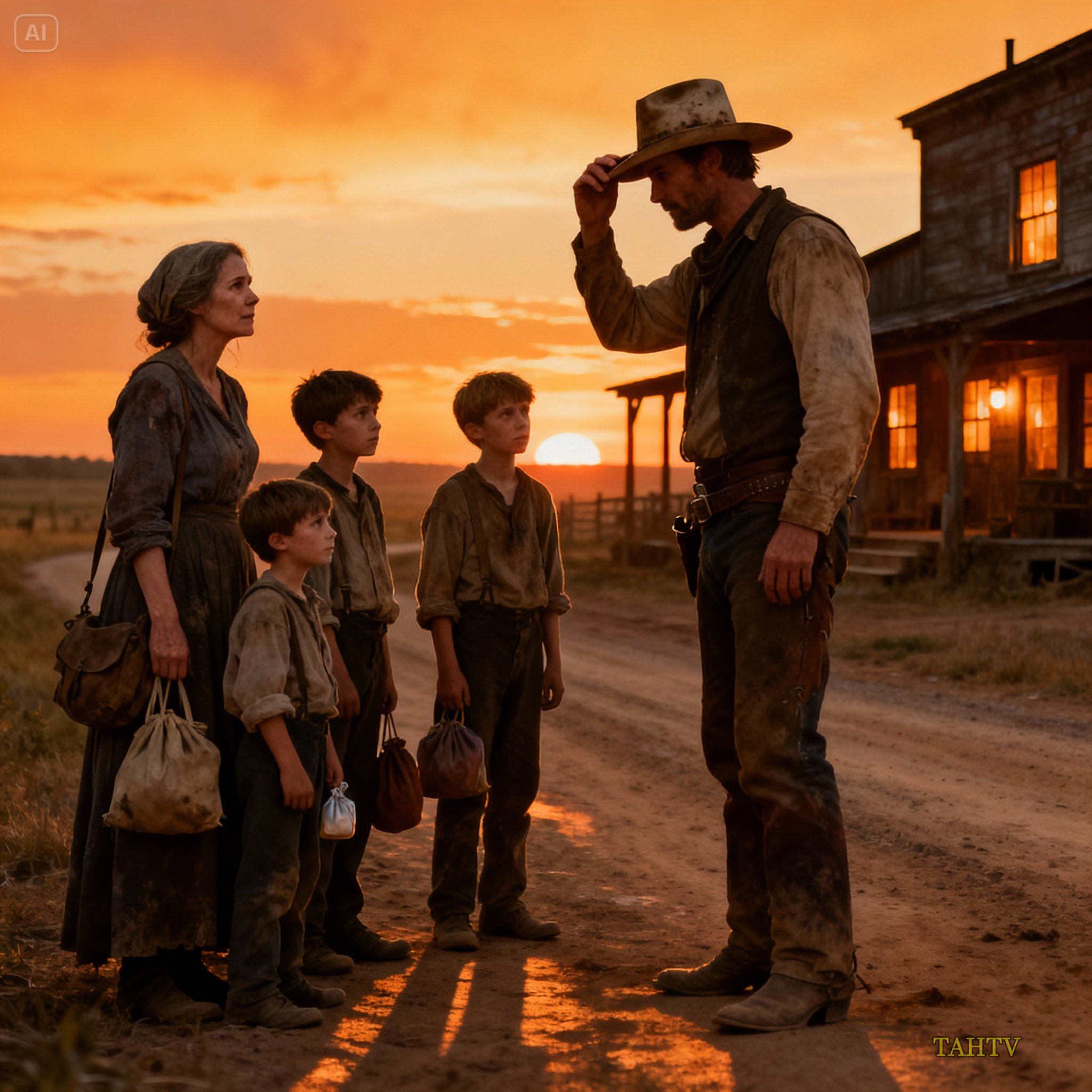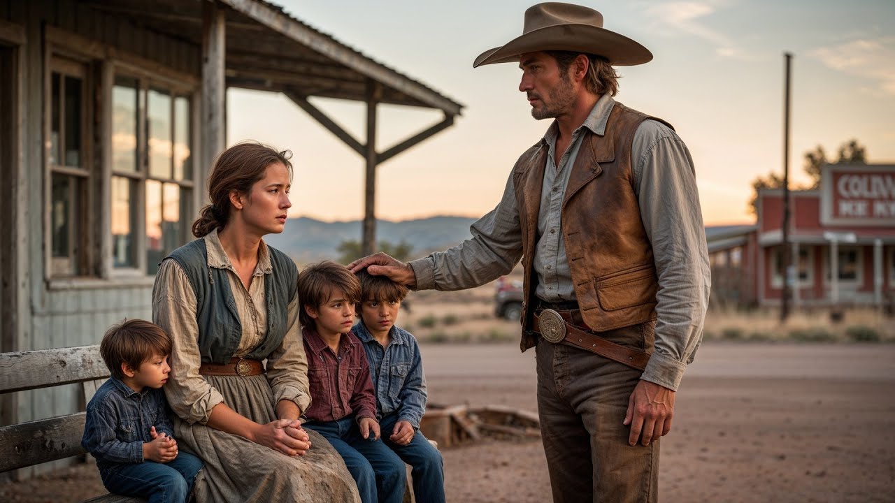 ” “We’re just resting a moment,” she replied, straightening her spine. “Pride was one of the few possessions she had left. The boys and I have had a long journey.” The man nodded, his eyes taking in the three tired children and their single carpet bag. Name’s Dawson Baxter, he said, tipping his hat. I run the Circle B ranch outside of town.